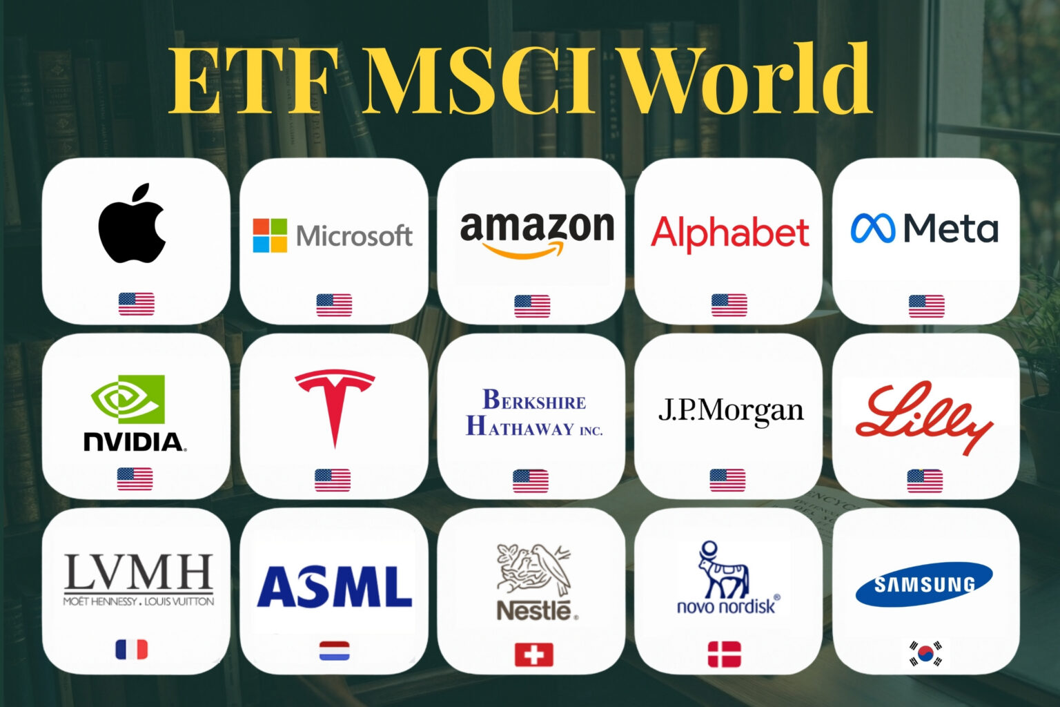 L’indice MSCI World est un indicateur boursier qui regroupe les plus grandes entreprises de 23 pays développés. Il est composé d’environ 1 350 sociétés et couvre près de 85% de la capitalisation boursière de chaque pays inclus. En achetant un seul produit qui suit cet indice, vous devenez actionnaire d’une fraction de géants comme Apple, Microsoft, NVIDIA, Nestlé ou encore LVMH.